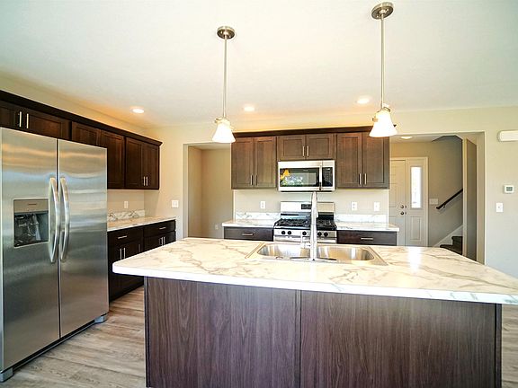 Brand New - Quality Construction! Ready to move into, 3 bedroom, 2 1/2 bathroom, 1,607 sq. ft. home with a full daylight basement set up for the 4th bedroom, full bathroom, a large family room and a storage/utility room. The covered front porch entry brings you into the foyer that has access to the wide stairways leading you to the lower level and to the upstairs, a conveniently placed half bathroom, and the entrance into the main level open floor plan design of a large living room connected to the dining room w/slider door access to the patio that overlooks the good sized back yard. The fully appointed kitchen just off the dining room and living room has an island w/breakfast bar and access to the mudroom/laundry room with a window and doorway into the attached 2 car garage. Upstairs you'll find the primary suite with a walk-in closet, double sink vanity and walk-in shower, 2 additional generous sized bedrooms and another full bathroom that completes level 2. The maintenance free exterior is an added bonus with vinyl siding and front stone accents finished designed with the popular craftsman style, all on a good sized lot that is seeded, professionally landscaped and irrigated. Check out the details of the Eastfield subdivision on eastfieldsubdivision.com. Fiber internet is available at this property. Check out all of the details at Eastfieldsubdivision.com. ASK US ABOUT BUYER CREDITS that may be available to you if you use our partnered lender for financing. Miller Brothers Builders / Journey Homes and Stockton Mortgage Corporation are not affiliated entities. Borrowers are free to select their own service providers. Credits provided for qualified borrowers by Stockton Mortgage Corporation, NMLS 8259.