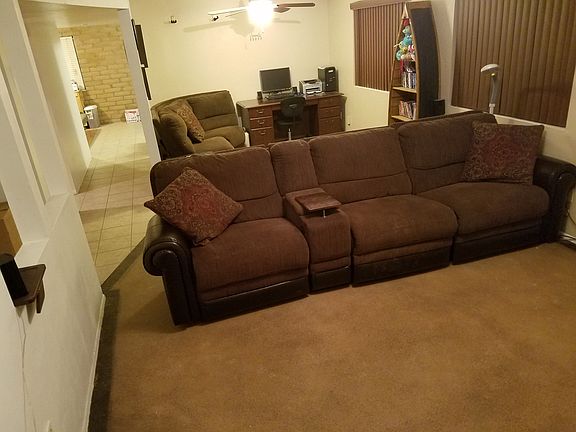Great 4 bedroom 2 bath family home with plenty of space. Make yourself at home in this wonderful home with amazing mountain views from the large backyard, which also wraps around to the side of the house. Enjoy the serenity this home can offer by only having one neighbor right next to you on the North as a city water channel is behind the house and on also runs on the south side as well. Interior features a cozy fireplace , upgraded kitchen cabinets, and an array of colors for the rooms.