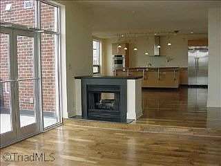 A rare and special offering in the heart of downtown, this is a specialcorner unit with spectacular views of Pilot Mountain, WFU, RJR bldg and Trade St, from your large balcony. There is a top of the line whole house entertainment system with no visible wires anywhere. All five flat screen TV's with HDMI wiring convey . Very quiet with above average soundproofing. Unit is sold with beautiful high end contemporary furniture that retailed for over $60,000. HUGE bonus is 2 cars secured, covered parking!