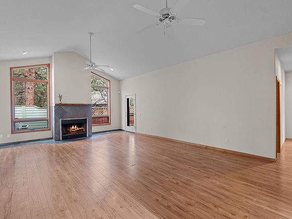 Set in a cul-de-sac, this home has a smooth, flowing single-level floor plan. The welcoming south-facing front deck wraps around the side of the home. Larger vaulted entry, filled in natural light looking into the vaulted living area. Gas-lit fireplace with stone-tile surround, natural wood mantle. The room exits to a large back deck surrounded by many trees. Many windows for natural light in this home. Carpets, Laminates, wood & stone tiled floors. Well appointed kitchen has a large island, appliances included, beautiful wood cabinetry, great counter space, and storage. Laundry room with storage. The main bedroom is an oversized, larger walk-in closet, and an exit to the back deck through a large sliding door. Trails, Golf, and Parks are all nearby. Your new home awaits your enjoyment in Bend, Oregon.