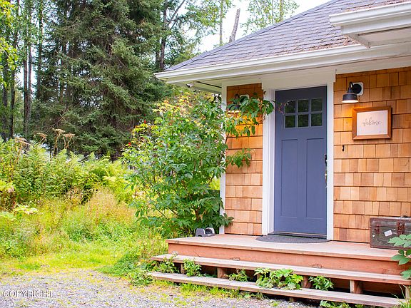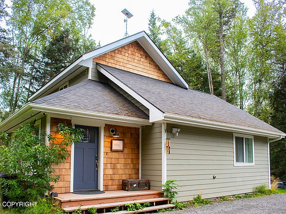 Tucked away on a wooded lot for privacy, this adorable 3-bedroom, 2-bath home offers the perfect blend of cozy cottage living and convenience. Located just up from the scenic natural trails at the Pratt Museum, you're moments from shopping, restaurants, and the hospital.The main level features a welcoming entryway and a spacious laundry/boot room with plenty of space to store all your Alaskan gear. An open-concept living, kitchen, and dining area create a warm, inviting space, with a deck off the dining room for enjoying the outdoors. The primary suite is also on the main floor, complete with an ensuite bath, generous storage, and a convenient stackable washer and dryer. Upstairs, you'll find two additional bedrooms and a full bath, perfect for family, guests, or a home office. With ample parking, a private wooded setting, and an ideal location close to town, this home offers comfort, character, and practicality all in one charming package.