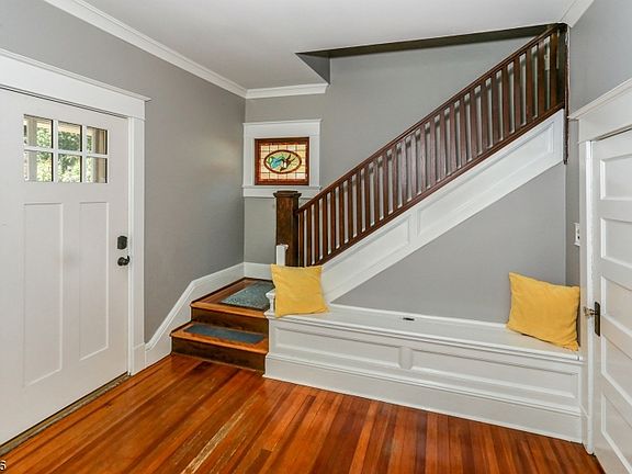 Charm & Curb Appeal describe this classic colonial. Wood floors, built ins, beautiful natural wood touches. Enter the enclosed lemonade porch to the living room with stained glass window. Greeted by a built in bench w/storage & original wood banister stairs going up to bedrooms. Hdwd floors & new windows in the living & dining rm w/large picture windows let in natural light. Custom built ins add storage & more charm to this lovingly maintained home. The kitchen's decor compliment the vintage touches. Adjacent to the kitchen & dining room is a bonus rm to be used as office or a place to unload after working in the yard. Upstairs has 2 bedrms & 1 full bath. The mster bedrm has 4 closets. Garden lovers enjoy a large open lot also for great parties. Detached & updated 2 car large garage. 200 amp electric.