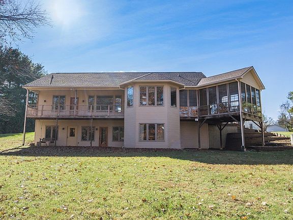 This Executive Estate Property is Selling via Online Auction, Fri. February 7th with the auction beginning to close out at 6 pm. Tucked back a long, paved circular driveway, you will find a beautiful custom home with outstanding views throughout! On the main floor, you will find a guest suite area that could easily become the master bedroom, a large living room, open concept kitchen & dining area. Right off the kitchen is an enclosed porch that takes in 360° views of the beautiful nature that surrounds this property and on the opposite side you will find a covered balcony running along the family room that can also be enjoyed. This home has a full, walk-out basement that has a master suite with double vanities & walk-in shower. It also has a second bedroom, family room, rec room & large mechanical room to round out the lower level. This home has space & could easily be converted into a 4- or 5-bedroom home! The attached 2-car garage adds convenience, and the second 2+ car detached garage is a great place for storage and a workshop area. The detached garage also has electricity & air along with an extra tall overhead door! Secluded back a long driveway, this tree-lined property is just waiting for you to call it home!
