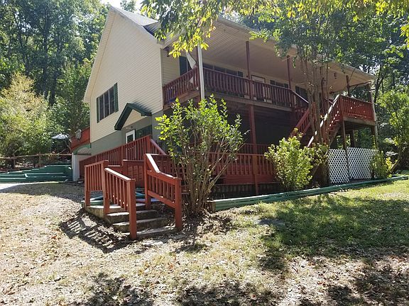 This home has everything! 3 levels of living with decking or balconies off either level to view front or back of this fantastic 10 acre farm. Koi Pond with waterfall installed in its natural rock setting outback. Front boasts pasture with 2 stalled horse barn with electric and chicken coop. Nice wood carport or picnic pavilion. Home has open concept with beamed vaulted ceilings. An abundance of closets and storage throughout. Newer CH&A. As of 9/02/19 new landscaping and deck staining completed. Along with home freshly power washed ready to move into. Lovely drive up to your home nestled privately off road. True living, True HOME FOR FAMILY!