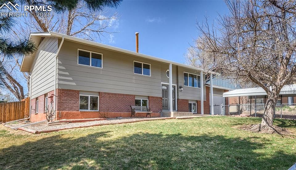 BEAUTIFULLY UPDATED HOME WITH A HUGE DETACHED 4 CAR GARAGE/WORKSHOP , located in Widefield, featuring 5 bedrooms, 2 baths, 1 car attached plus an additional carport, original refinished hardwood floors on the upper level, two large living areas, all of the bedrooms are decently sized, featuring a nice flow throughout, plus a large laundry area with lots of storage space on the lower level and walk-out to backyard. This home is perfect for anyone who needs extra space for parking, hobbies or gardening as it is situated on a large corner lot, mature green apple tree in the front yard, plus 2 sheds, a huge 4 car detached garage, a chicken coop and plenty of space for RV parking. Close to military bases, schools, and shopping ! Must see !!!!