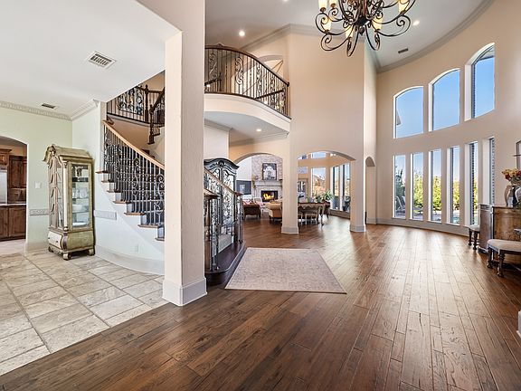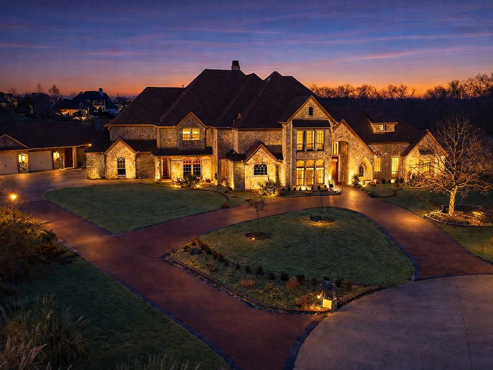 Texas Paradise is a remarkable Traditional Texas Estate set on 1.67 acres in Heath’s prestigious The Ridge, surrounded by 45 acres of preserved greenbelt with ponds and scenic walking trails. Offering 6,589 square feet of refined living, this residence features 5 bedrooms, 6.5 baths, soaring entry and living room ceilings, and exquisite ceiling treatments with crown molding throughout. Designed for both grand entertaining and everyday indulgence, enjoy a game room with wet bar, media room, private office, plus an upstairs bedroom that doubles as a secondary office. A resort-style outdoor oasis awaits with pool, spa with waterfall, outdoor kitchen, and expansive patio. A second-floor balcony captures sweeping views of three ponds. The private 1,000-square-foot casita offers a 3 split-air HVAC units, full kitchen, living area with a wood-burning fireplace, office or guest bedroom, and 2-car garage. The lavish primary suite showcases a sitting area, fireplace, spa-inspired bath, and dual closets. Main home has a 4-car garage for a total of 6 garage spaces! Located in coveted Rockwall ISD and minutes from Heath dining and shopping—this is elevated Texas living.