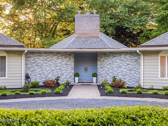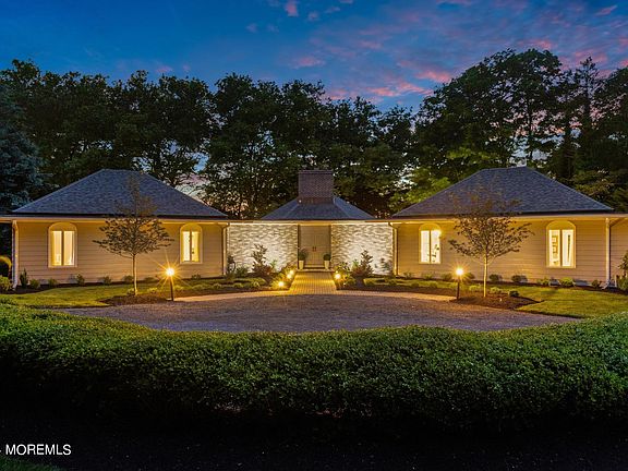 Your search for suburban retreat ends here. This expanded ranch boasts 4 bedrooms and 2 and 1 half baths situated on nearly 1.2 acres of mature landscaping. This incredible home offers single story living spread across 3,400sq ft of living space. This home flows wonderfully bringing the beautiful views of the park-like backyard inside and accommodates 20+ cars in the circular driveway! The focal point is the famous Clive Christian Kitchen. The elegant yet comfortable and inviting kitchen has been featured in news articles and was used for a PBS cooking show. It features a timeless design with a compilation of key aesthetic elements such as the corbel and reeded pilasters, a timeless custom 7 ft. Brooks Custom teak wood center island, a 7ft mantle with pull out spice drawers above one of two gas ovens. There is a second electric Thermador oven tucked into the island. A Sub-Zero refrigerator, dual drawer Fisher-Paykel dishwasher, two whimsical crystal/wrought iron chandeliers and a limestone floor finish out this entertainer's kitchen which then seamlessly flows into a 600 sq. ft. open family room with custom surround sound. The den is integrated to the upper back patio which flows to a beautifully landscaped lower patio area which features a custom-designed 20'x40' sand-colored pool with a 6 ft. sundeck and waterfall (inspired by the Delano Hotel in Miami). Beyond the fence lies a large and open park-like backyard that is lined with century-old Sycamore trees. The sun drenched living room with a UV coated wall of windows and a brick, wood-burning fireplace offer incredible views of your park-like backyard. The East wing features a primary bedroom with an ensuite with double vanities, heated floor and a large walk-in closet/dressing room, 2 bedrooms and 1 other full bath (also with heated floor. The West Wing features a guest bedroom and office that lead to the den. The home is anchored with the large living room, dining room, half bath and kitchen located in the center of both wings. Bar with wine refrigerator, ice maker, refrigerator and bottle storage adjacent to the dining room finishes off this space. Another amenity is the landscape fertilization system integrated into the irrigation system. This home has it all and is located in the sought after R40 zone map which offers plenty of room for expansion, if needed. Minutes to NYC ferry and all of the local shops, restaurants, and beaches this area has to offer!