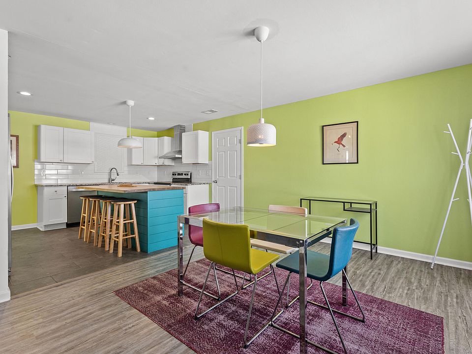 Attention Creatives! This contemporary design is sure to fascinate your imagination! This 4 bed, 2 bath home sits on a 1/4 acre lot next to a public park & elementary school that allows for TONS of privacy. Spacious first floor layout with a glorious living room addition that's awash in sunlight, an updated kitchen w/ tile flooring, new cabinets, stainless appliances & granite countertops, dining room that's open to the kitchen, a primary bedroom + en suite, 3 & a 2nd full bathroom. In the finished basement, you'll find a second living space, 2 additional rooms that could be bedrooms # 5 and 6 (no egress) + an unfinished storage space. Outside, you'll enjoy a new deck in warmer months & a fully-fenced yard for your furry friends! Call listing agent or your favorite realtor for a showing! Selling as is - sellers have already moved. Inspections welcome!