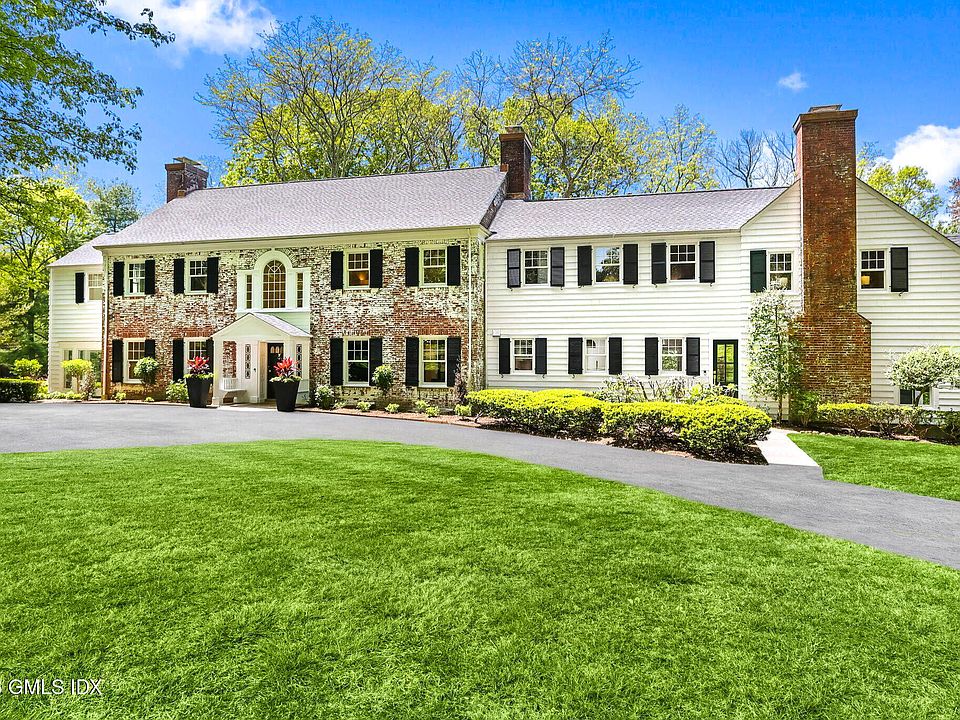 Set on 4.3 picturesque acres along coveted Round Hill Rd, the original main residence of historic Field View Farm is a distinguished pre-war Georgian Colonial of exceptional quality, long associated with one of the area's notable legacy estates. A long sweeping private driveway introduces the stately brick and clapboard home, thoughtfully and comprehensively renovated to today's highest standards with new Generator.
