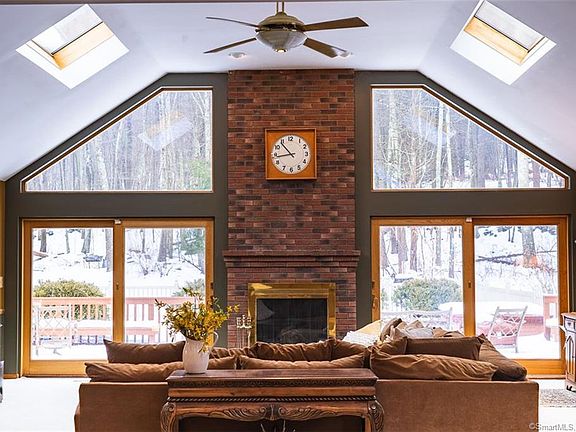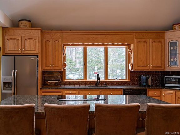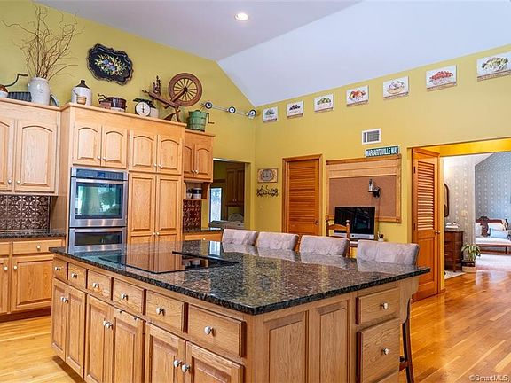Modern contemporary home set on a 3 acre land parcel boasts an open floor plan with over-sized panoramic views of pristine natural settings from all vantage points. This home features 2430 square feet with updated features and mechanicals. Enjoy this home's modern kitchen with expanded agave granite island and wrap around counter tops. Stainless steel appliances, double copper sink, double ovens, 5 burner cook-top, and hardwood oak flooring compliment the kitchen area. The expansive living room area with entertainment center, brick fireplace and direct access to outdoor deck areas make this home the perfect entertainment landscape. The built in pool with liner and self cleaning amenities has maximum depth of 4.5 feet at center. This home is perfect for entertaining guests during summer gatherings or with a roaring fire during winter's first snow fall. Start you day with convenient access to I395 and nearby River Ridge golf course. Enjoy the perfect respite at the end of day while dining Al fresco on your own private deck overlooking the nearby pond area, stone walls and neighboring farm lands. The main floor offers 3 bedrooms with 2 full baths. The master bedroom includes bathroom with spa features and skylights that allow for maximum light exposure. The main entry showcases a tile foyer leading to dining room and adjoining sitting room. Home includes 2 car garage, automatic door-opener, adjoining breezeway, washer dryer convenience and lower level recreation room.