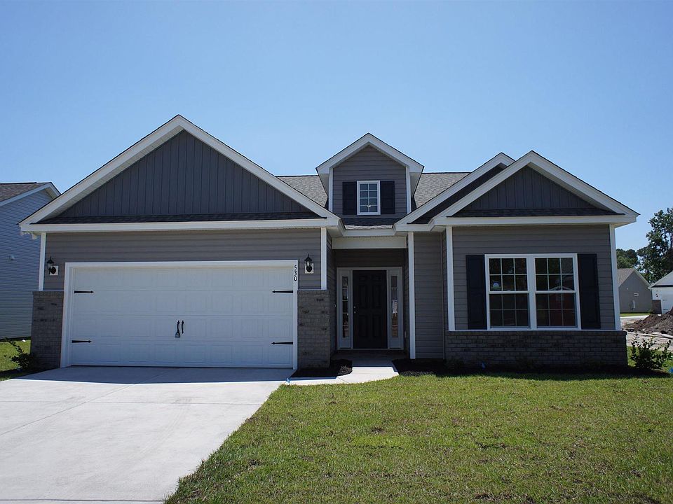 Beautiful Hatteras C floor plan in the new Ocean Palms community. This terrific open floor plan, 3 bedroom, 2 full bath home with an added double height ceiling live dormer entry, with waterproof LVP flooring in living spaces and carpet in the bedrooms. Stainless appliances, staggered-height white painted Shaker-style cabinetry and a convenient quartz kitchen island and a custom range hood combine to give you the wow factor you're looking for, and abundant recessed lighting, pendants over the island, plus two large windows in the adjacent dining area flood the room with light. There's even a large walk-in pantry and an office! A French door at the back wall of the great room leads to the screened rear porch and the huge separate patio beyond. The spacious owner's suite features a long vanity, an oversized walk-in shower, raised toilet, plenty of storage in the linen closet and a huge walk-in closet. Two additional bedrooms and a full bath are tucked off on their own hallway, for privacy. All of the homes in Ocean Palms come standard with the luxury of natural gas (tankless water heater, gas heat, and gas range). The two car garage is completely trimmed and painted. Ocean Palms is conveniently located near shopping, restaurants, schools and world class medical offices and hospitals, and only a short golf cart ride to Surfside Beach's gorgeous beach and the beautiful Atlantic Ocean. Other floor plans and inventory homes may be available, and CUSTOMIZATION OF FLOOR PLANS IS POSSIBLE!!! Community Pool and Cabana are now open! Photos are of a completed, similar home and may have different features.