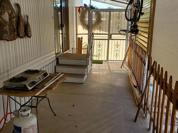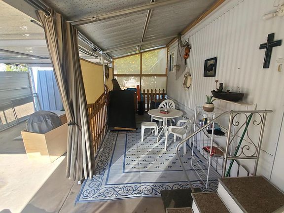 Freshly painted! Quiet 55+ community with low monthly land lease. Cute updated home and Almost all the furnishings stay! Home features : electric cooling and heating, gas water heater, over sized carport, brand new storage shed with electricity, covered patio, and new windows and flooring!! Master bedroom features large closets and built in dresser. The home is almost totally furnished including TV's, towels, dishes, etc.