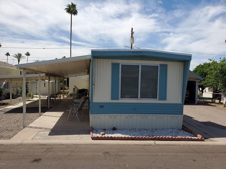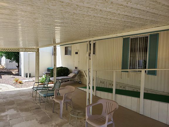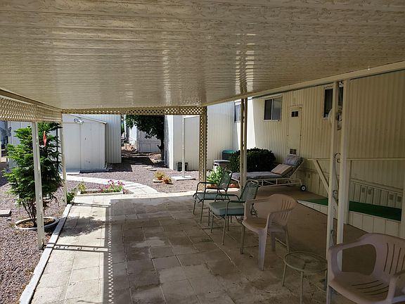 Quiet 55+ community with low monthly land lease. Cute home that comes almost furnished! Home features : electric cooling, heating, and water heater, over sized carport, 2 storage sheds with electricity, covered patio. Master bedroom features large closets and built in dresser and private bath. The home is partially furnished.