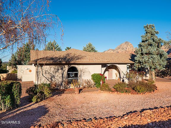 Single level home in a most desirable and peaceful neighborhood. .31-acre lot has a fenced back yard with fruit trees, garden bed, and small lawn and the front yard has well-maintained low maintenance mature landscaping with beautiful roses and other flowering plants. The wisteria covered gazebo on the north side of the home provides a beautiful shaded area in the summer. The beautiful paver driveway and walkways are new this year, with an additional area for table and chairs. The two guest bedrooms on the East side of the home share the hall bath. The owners bedroom is on the West side, has its own bath with a walk in shower and private access to a viewing deck and the backyard. Located in the heart of West Sedona it's close to shopping, dining, hiking, Whole Foods and other amenities.