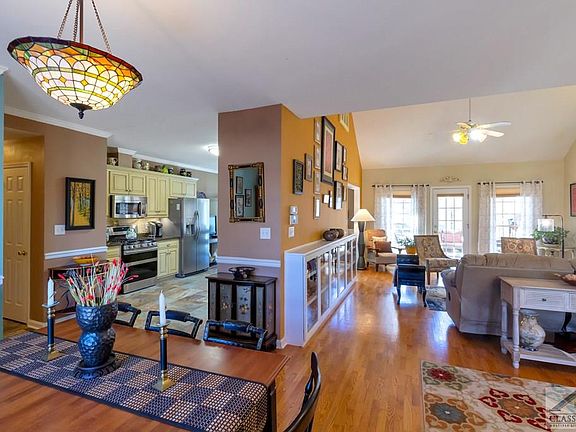This wonderful home is close to all types of shopping, and entertainment. Lowes, Home Depot, Walmart,, dining, and shopping are all within 5 minutes Located in the desirable St. Ives subdivision th is a 4-sided brick corner home with a circular drive and 2-car garage. This open great room overlooks the screened porch and has a cathedral ceiling, hardwood floors and a wall of custom made cabinets with tempered glass doors. A gas fireplace is great for those cold winter nights. The dining area is open and inviting with a chair rail and crown moldings The eat-in kitchen has quartz countertops, backsplash and glazed cabinets, two of which have custom leaded glass.. A porcelain tile floor is throughout the kitchen and foyers. The stainless steel appliances are less than two years old and includes a deluxe double oven gas stove. Hot water heater was replaced 2018. The sliding glass door in the kitchen opens to the deck which had trex decking installed 2018 and overlooks the fenced yard. The house features a split bedroom floor plan with trey ceiling and hardwood floors. The master bathroom includes dual vanities with granite countertops. The tiled shower, has a frameless shower door. There are even his and hers closets in the master! A Steam humidifier with new programmable thermostat and humidistat was installed 2018. With its bright and airy open floor plan, this unique house is a must see.
