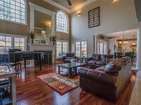 Exceptional living quarters w/upscale finishes are found in this 6 BR Madia-built home w/6,000+sq. ft (includes LL) sited on 1.3 Acres. 6-car parking (4-car attached+2-car detached). Dramatic two-story Entry with balcony overlooking the expansive two-story Great Room with wall of windows, new hardwoods & custom fireplace open to the gourmet granite, stainless Kitchen with new:refrig,2 microwaves,dishwasher,trash compactor,2 ovens,2 pantry closets & large granite island. Formal dining Room w/new hardwoods. Handsome Den with new hardwoods and custom cabinetry. The 2nd floor features 6 generously sized BRs(2 are suites). The spacious Owner's Suite has tray ceiling,see-through fireplace,new carpeting,walk-in closet, luxurious whirlpool bath w/Granite counters. The newly finished Game Room has a custom wet bar with wine refrigerator. Exercise Room w/mirrored wall, Guest/Nanny Bedroom, full Bathroom and a spacious storage room. Back yard with private patio, fire pit, two ponds & waterfall.