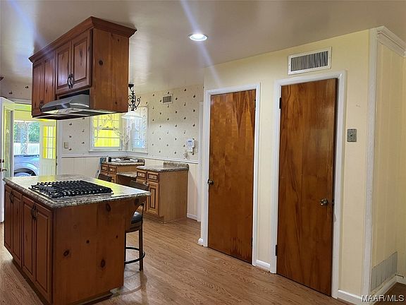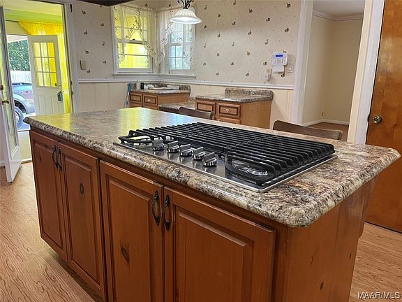 Remarkable brick house for sale with 3 bedrooms, 2 baths and an extra extra large lot! This home offers a delightful blend of classic charm and modern upgrades. Stepping inside, you'll immediately notice the tastefully updated kitchen and bathrooms, large family room that is open to the updated kitchen and an large living room and separate dining room. One of the highlights of this home is the absence of carpet throughout, creating a clean and low-maintenance living environment. The kitchen is truly the heart of the home, with its large and open layout that seamlessly transitions into the welcoming family room. This design promotes a sense of togetherness and is perfect for entertaining guests or spending quality time with family. The kitchen itself is equipped with modern appliances, ample counter space, work island, and abundant storage, ensuring both functionality and style. The back of the house features a covered deck, providing a comfortable and shaded outdoor space to enjoy the surroundings. Equipped with a fan, the deck allows for relaxation even on warmer days. The sprawling lot offers great landscaping, with well-maintained gardens, lush greenery, and perhaps even some charming features like a pond, fountain, or gazebo. Also has a workshop/storage building, providing the perfect space for hobbies, DIY projects, or additional storage needs, carport and 3 other attached storage rooms. This home is convenient to churches, shopping, the Eastern Blvd, and only minutes to Maxwell and Gunter Air Force Bases!