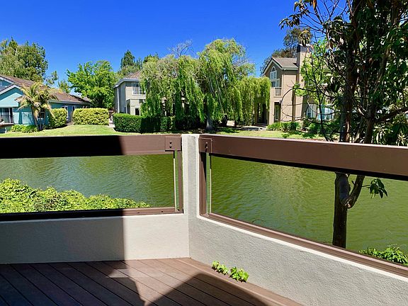 530 Shorebird Circle Unit 7102, Redwood Shore, CA, is located on the peaceful and calming Redwood Shore lagoon waterways. It is a two level 1300 sq ft condo with 2-bedrooms 2 1/2 bathrooms. The 2nd floor upstairs has 2-bedrooms and 2-full baths . The Master Bedroom has a balcony that overlooks the waterway with peaceful views. Both bedrooms have large mirror paneled sliding doors. The 1st floor, ground level, has the kitchen, atrium skylight kitchen nook and a garden patio off the kitchen nook. The common dining and living room has a fireplace and a patio on the waterway with relaxing views. There is a covered gated garage with one "reserved parking space" and cabinet storage and other open exterior space parking. The lease is $4275/month. 3x rent to move in.