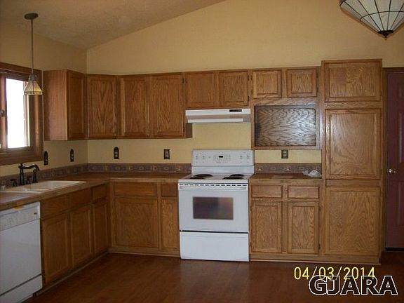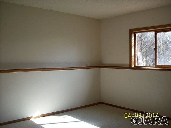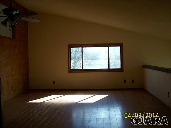 Passive solar home. Solar area off living room. Great place for plants, etc. Windows have unobstructed views of Grand Mesa due to field. There is laminate flooring in living room and kitchen. Carpet throughout rest of home. Very open floor plan. Some designer paint. 4 bedrooms, 2 baths and a 2 car finished garage. There is a deck off the master bedroom. Many windows for lots of light.
