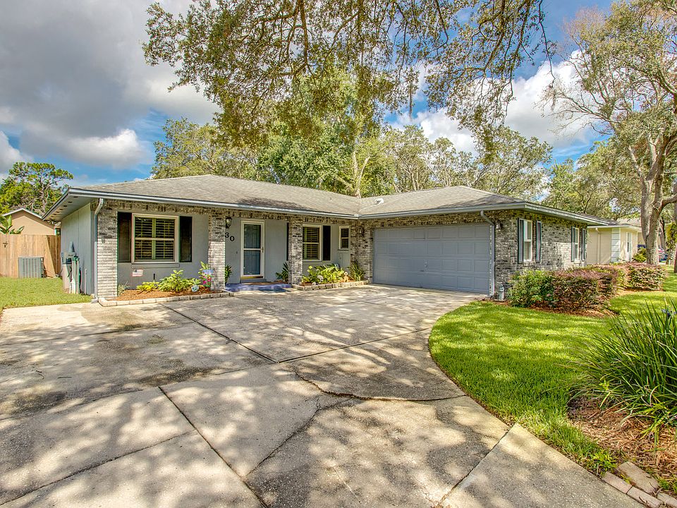 What a hidden gem! Located on a private, newly fenced-in lot, this 3 bed/2 bath pool home with NO HOA is move-in ready and waiting for you. Upon entry, you will notice the pride of ownership that has kept this property in amazing condition. Neutral fresh paint, gorgeous bamboo floors, and plantation shutters throughout set the tone for a warm and welcoming home. A dining room is just off the foyer & is large enough for a grand set. You will love how this floorplan is ideal for separated spaces that feel connected. Step through to the deluxe eat-in kitchen with newer stainless appliances, plenty of custom cabinet & counter space, and closet pantry. The spacious living room is just waiting for your full sectional and is highlighted by the stone surround wood-burning fireplace. Plus you will find sliding glass door access to the rear lanai. The master bedroom is ample size for a king set and the attached ensuite features a large walk-in closet and oversized step-in shower. Across the home are 2 more generously sized bedrooms which share a full bath that has a tub/shower and access to the pool patio. Step outside to the screened and covered lanai with ceiling fans and it looks out to the oasis of a backyard where you can take a dip in the pool or use some of the ample paver patio sunbathing deck space. Plus there is a HUGE utility shed for extra storage. An attached 2-car garage has washer/dryer hookups AND there is a carport to the side of the house that can be used for extra vehicles, boats, or other toys.