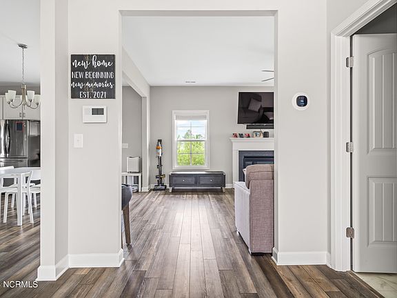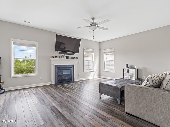 Welcome to Oyster Landing, one of Sneads Ferry's most sought after neighborhoods! This extremely well kept home is ready for new owners. The Aberdeen floor-plan, built by Caviness & Cates, offers 3 bedrooms, 2.5 bathrooms, an office space that could function as an additional bedroom, and a nursery room off of the owners suite. Downstairs find said office space, a large open concept living room with plenty of natural light and a central fireplace, and a gorgeous white kitchen featuring granite countertops, stainless steel appliances, and plenty of cabinet space. Upstairs find 2 spacious bedrooms that share a hall bathroom along with the owners suite that has its own nursery room attached. It also offers a large ensuite bath with dual sinks, a large walk in closet, and separate tub and shower.