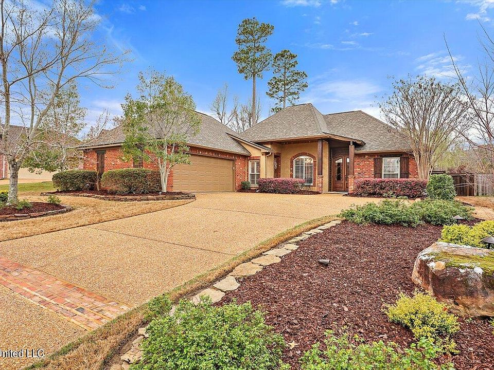 Welcome to your personal getaway! This property is unlike any other with a totally renovated kitchen and an incredible backyard oasis. The owners spared no expense and have meticulously maintained + elevated this home throughout the years. The kitchen was fully renovated in Sept 2023 with gorgeous quartz countertops, new stainless appliances, a farmhouse sink, pot filler, soft close drawers and much more. The breakfast nook boasts a cozy, second fireplace that was whitewashed to brighten the look. A semi-open floor plan allows for cozy spaces and plenty of room. 3 bedrooms and 2 full bathrooms all on one level. Oversized storage cabinets added between kitchen and laundry. Don't miss the gorgeous Chicago brick detail and scored concrete floors. Vinyl plank flooring added in all bedrooms + interior painted in Nov 2020. New roof with lifetime warranty, new coil in AC, and new exterior paint August 2023. And an added extra are the Swiss Tracks in the garage. Now let's get to the oasis! Say hello to this stunning 20,000 gallon gunite pool that can be heated or cooled with the press of a button. An 8-man hot tub with fiber optic lighting. Deck jets, 2 skimmers, 2 fire pits, a 10 speaker surround sound and covered patio/bar area. Professionally landscaped (front and back) with french drains and a unique stone bridge. You have to come see this property to envision yourself relaxing in your own private getaway, no matter what season Mississippi gives us.