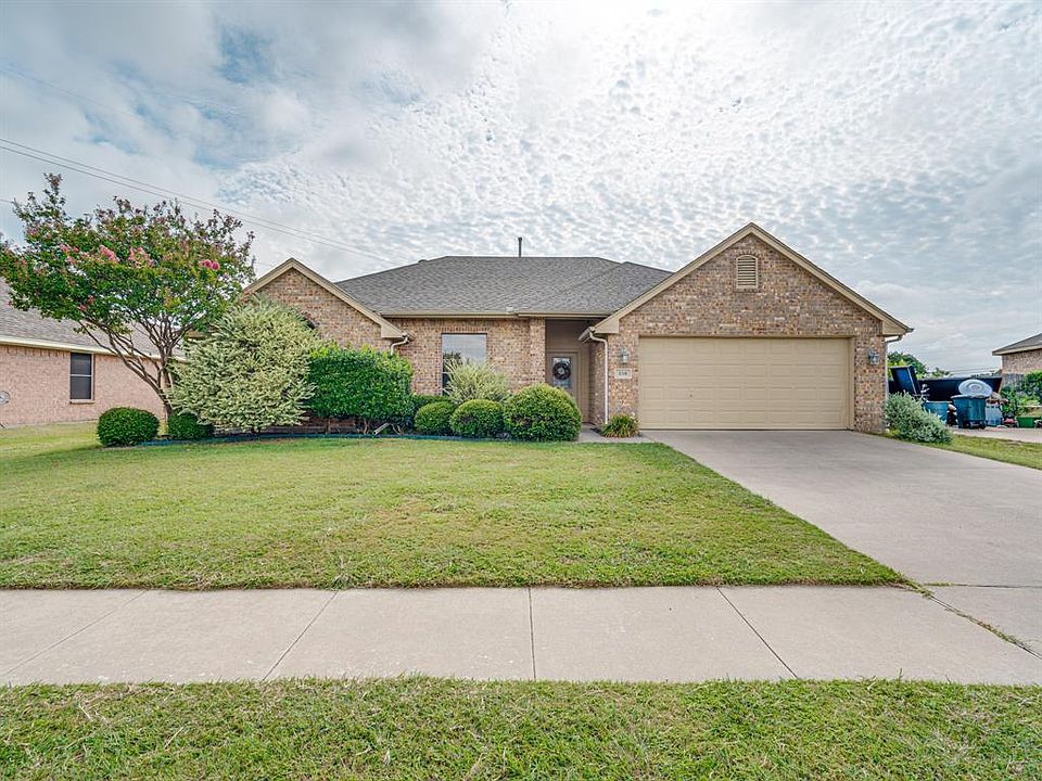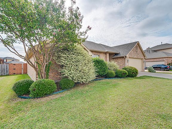 Beautiful 1 story home built by Creative Homes. It features an open eat in kitchen with built in microwave, breakfast bar and walk in pantry.* Large living area boast a corner gas start wood burning fireplace and crown molding.* Master bathroom has separate sinks, a garden tub for soaking, separate shower and a nice walk in closet.* Split bedroom floor plan.* Covered patio overlooks a fenced backyard with a sprinkler system in both back and front yards. *Security system and more!