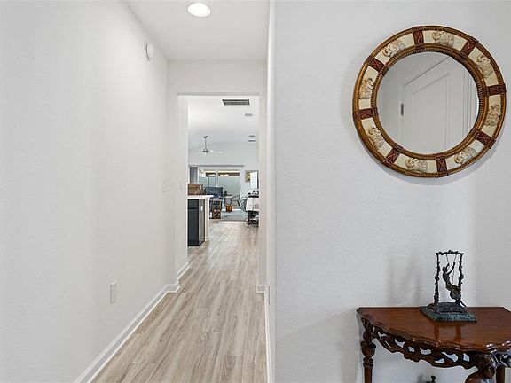 Welcome to 530 Van Deen Place just minutes from the new destination of Eastport, located in the heart of The Villages, is buzzing with activity as construction projects across the area bring an exciting vision to life. Eastport is set to become a destination that offers something for everyone. Discover effortless luxury and modern comfort in this newly built courtyard-style villa, nestled in a peaceful setting within the vibrant 55+ community of The Villages. Step inside to an inviting open floor plan layout boasting soaring ceilings, luxury vinyl flooring throughout, and a chef-inspired kitchen featuring sleek quartz countertops, TURKISH SHOWER in the primary suite and elegant finishes throughout the home. The spacious courtyard and professional landscaping create a private outdoor retreat for morning coffee or evening gatherings. Your two-car garage offers stylish utility and extra storage. Living here means enjoying world-class amenities: gated access, fitness center, dog park, golf and tennis courts, pools, many activities to join and a range of outdoor paths and green spaces, all within a short drive to restaurants, healthcare, and shopping.