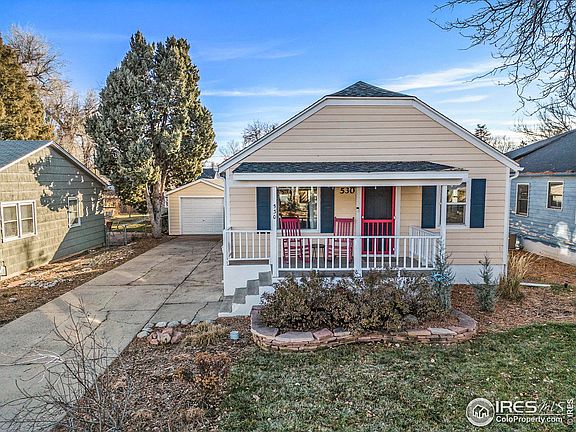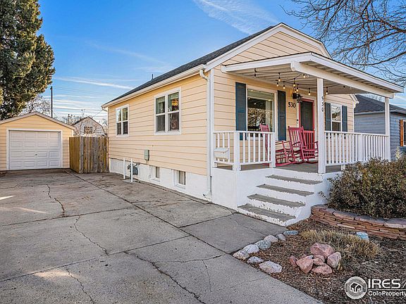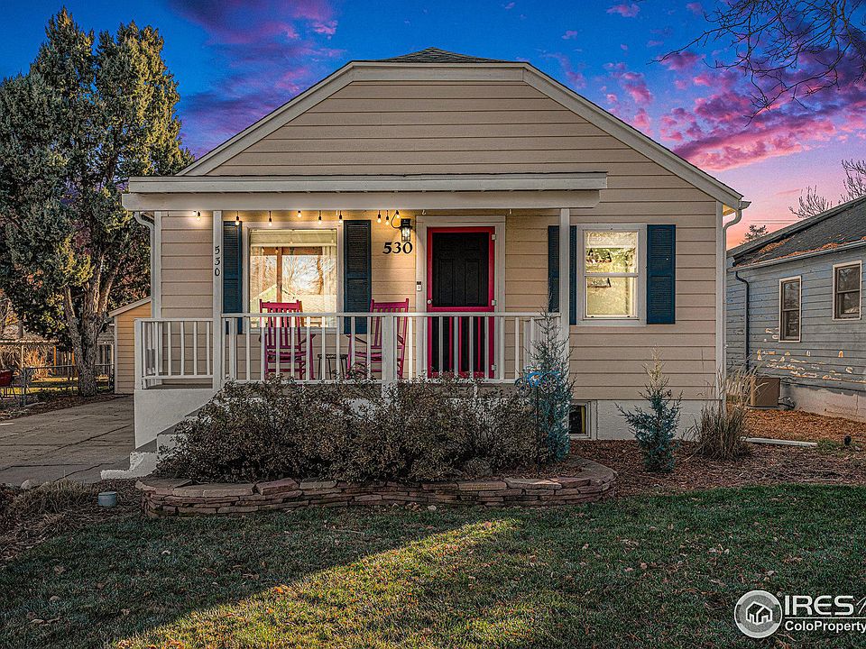 Nestled in a charming, walkable neighborhood just minutes from the restaurants, breweries, and shops of downtown Loveland, this beautifully updated 4-bedroom, 2-bathroom home is a rare find. The property has been thoughtfully renovated, including a modern kitchen, new dishwasher, a tankless water heater, all while maintaining its cozy charm. The meticulously landscaped yard is a gardener's dream, featuring a professionally designed layout, an in-ground sprinkler system, large raised garden beds with irrigation, and mature apple trees, raspberries, hops, and peonies. The spacious backyard also offers alley access, perfect for parking a boat or camper. Inside, the main floor boasts two bedrooms, a welcoming living room, a bright kitchen, and a sunny, light-filled sunroom. The lower level features two additional bedrooms, a large utility room, and a convenient kitchenette, making it perfect for guests or multi-generational living. Additional highlights include driveway parking, a versatile one-car garage that doubles as a potential workshop, and the freedom of no HOA or Metro Tax. Don't miss this opportunity to make this delightful home your own!