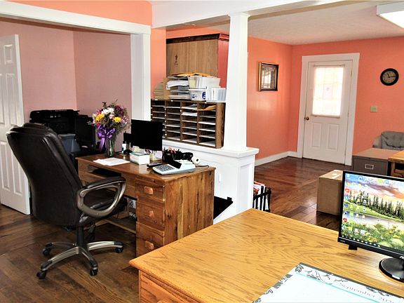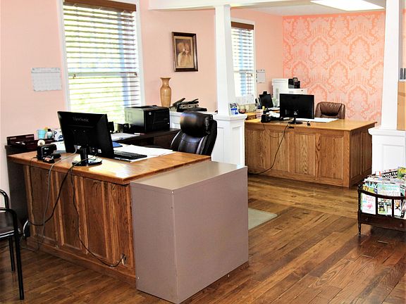 Office/retail high local traffic. Also as an upstairs apartment that rents for $450.00 per month. Very nice hardwood floors well decorated, kitchen, bath, reception, 4 offices, storage/file room, central heat & air. Upstairs apartment with hardwood, bath, kitchen, living room, bedroom, central heat & air. Excellent price asking $149,800