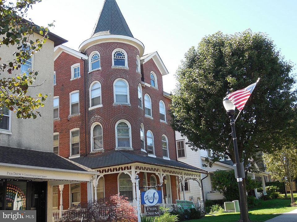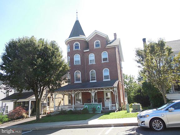 CLASSIC three story all brick beauty with Victorian touches such as the wrap around covered porch and gorgeous turret; situated in the center business area of Perkasie. Currently used as a 4 unit residential building with two (1) bedroom apts. on the first floor and (2) two bedroom units on each of the second and third floors. Ideally suited for mixed use with office/retail commercial on the first floor and continued residential use on the upper floors. There is two story (2) bay garage, in fair condition, and off street parking for 6-8 cars.