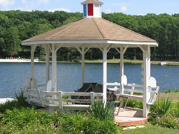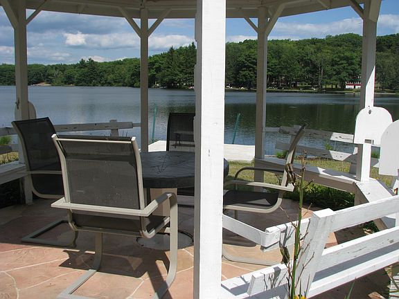 Lakefront property near the Poconos within walking distance of PA state game lands. 15-20 minute drive from 476 Northeast Extension Wilkes-Bare Exit and from the I80 Blakeslee Exit. Property Also included with lot is non-adjacent lot with small outbuilding currently used as a boat and canoe storage and launch location. There are three sheds located directly on the property with one Amish shed, and two smaller storage buildings. Gazebo with electricity and sound hook-up. House also includes built-in speakers in the main house and covered patio. Includes several levels of patios and decks with space enough for a great spring, summer, and fall experience. Wintertime the home is close to Poconos and great skiing and hunting. Septic and Well The lakefront includes wood retaining wall directly on the waterfront for ease of canoeing and kayaking. 2 Stone Fireplaces one on main level and one on basement level. Interior is in good condition but slightly dated, would need updating if living there full time but used as a vacation home would be usable. Wet bar on the basement level with a pool table. This is the perfect vacation home and with amazing views and cozy outdoor living. Serious offers will be considered.