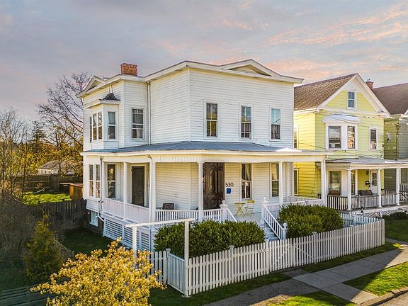 Built circa 1860, the Bollard Pearl House stands as a historic gem in the heart of Hudson, blending original architectural details with striking design and modern luxury. Nestled on a quiet neighborhood street, yet just a short stroll from the vibrant bustle of Warren Street's restaurants and shops, this charming residence has undergone a designer renovation along with the installation of new AC and electrical systems. Available fully furnished, the Bollard Pearl House offers idyllic neighborhood living in one of Upstate's most coveted cities.Entering Bollard Pearl House is akin to stepping into a jewel box, wrapped in rich Farrow & Ball color palettes and sophisticated finishes. The curved front staircase stands as a testament to craftsmanship and timeless design. Moving through the first floor, the front sitting room and family rooms boast original fireplaces and lofty ceilings. The formal dining room has been further enhanced with a custom seating nook. Having undergone a comprehensive remodel, the kitchen now includes a custom granite island, window overlooking the yard, Miele appliances, and a custom-built coffee station. Upstairs, find three bedrooms, two baths, laundry room, and a newly transformed front office. The primary bathroom suite was remodeled down to the studs with new tile, custom shower, toilet room, and brass fixtures. Throughout, new design elements blend seamlessly with the original details, such as tin ceilings and pocket doors, enhancing both functionality and beauty in this exceptional space.Outside, Bollard Pearl House continues to impress with a fully trenched and fenced-in private yard, featuring a new hot tub and back deck, perfect for summer entertaining and relaxing. The wrap-around front sitting porch and white picket fence add to the property's curb appeal and picture book charm. With private parking, a Tesla EV charging station, and video security system, Bollard Pearl House provides both privacy and convenience.Ideally located within walking distance to Warren Street, it's also conveniently located near Columbia Memorial Hospital, the Amtrak Station, as well as the highly anticipated Pocketbook Factory. For those who love the outdoors, the property is a short drive from Olana State Historic Park, Omi Sculpture Park, and nature hikes. With its blend of historic charm and modern amenities, Bollard Pearl House offers a truly unique neighborhood experience in the heart of Hudson.