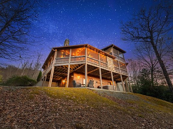 Escape to your very own mountain retreat in the heart of Weaver Creek and the Aska Adventure Area! This stunning and impeccably maintained cabin offers the perfect combination of rustic charm and modern convenience with breathtaking views of the surrounding mountains and forests. Located just minutes from world-class hiking, mountain biking, fishing and water sports it is the perfect basecamp for outdoor enthusiasts. And with easy all paved access to Blue Ridge, you'll have plenty of options for dining, shopping, and entertainment. The cabin boasts an open-concept living area and 3 cozy stone fireplaces throughout. Four bedrooms plus a loft offer plentiful sleeping arrangements. Private balcony off of upstairs bedroom. Outside, large wrap around porches provide the perfect spot for relaxing and enjoying the stunning views, while a hot tub promises to soothe tired muscles after a day of adventure. Plenty of parking with circular driveway. On successful short term which can be transferred to new owner and sold turn key.