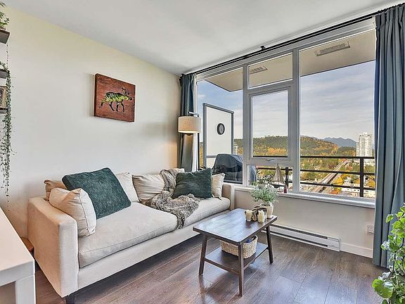 BROOKMERE Beauty! Perched high on the 22nd floor, nearly New + Immaculate home offer jaw dropping Mountain Views! Spacious + smart 1 Bedroom + DEN plan by award winning Onni Dev. Overheight 9ft ceilings w/oversized windows, large balcony, chef kitchen w/gas range, top of line SS appliances, quartz counter, large waterfall kitchen island and laminate flooring. WOW! over 14000ft AMENITIES that incl concierge, full gym, games & grand scale party room, theatre, meeting room, guest suite and kids play area. Steps to new City of Lougheed, skytrain, shops, restaurants and SFU. 2-5-10 warranty. Parking and Storage incl. Viewings by appointment this Wed 530-630pm, Sat/Sun 1-3pm.
