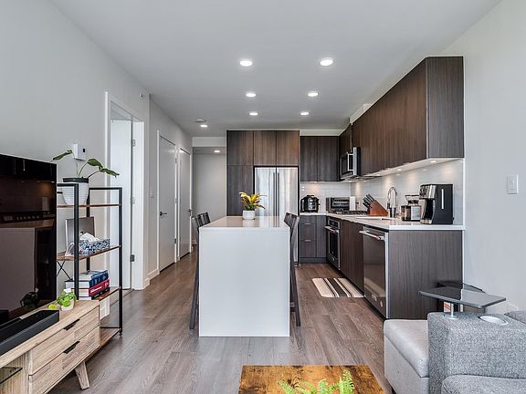 Stunning 1 bed + Den located in the highly sought after Brookmere! This amazing concrete building was built in 2019 and features an array of features and amenities. This rarely available unit comes with 2 side-by-side parking stalls and unique sprawling patio! Open space floor plan with over-height ceilings! Showcases gourmet kitchen with high-end stainless-steel appliances, tile backsplash, plenty of cabinet space, and breakfast island! Opens to bright and spacious living room with access to your private over-sized patio! Comes with extra flex space for your specific needs. Amenities include gym, lounge, theatre room, games, room, and guest suite, and on site concierge. Centrally located close to shopping, restaurants, skytrain, and recreation. Includes 1 locker and 2-5-10 warranty!