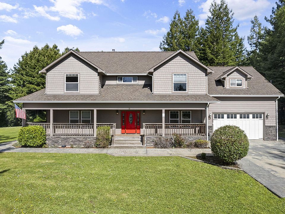 Private Luxury Estate in the Redwoods. 4000 sqft custom home with 2400 sqft shop and attached ADU on 10 acres. Valley views and Carlotta's beautiful temperate weather. Grand open living room with large bar and wood stove. Kitchen boasts granite slabs, tile flooring, stainless high end appliances, exstensive cabinetry. Large primary suite with dual walk in closets, soaking tub, open tile shower and dual vanities. Detached 40 x 60' shop with 3 large roll up doors and half bathroom. The ADU attached to the shop is private from the home, 2 stories, 1360 sqft, 2 bed 1 bath, currently rented. Exterior attributes include: covered porches, concrete patio with firepit, gentle topography, horse paddock, redwood trees and total privacy at the end of the road.