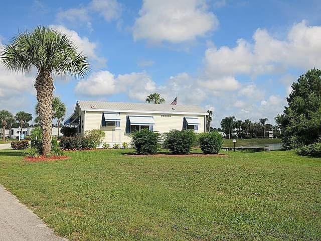 1BR 1BA 762 sg ft including the additional 25x12 enclosed windows and AC Florida room with tile floors, home has lovely engineered wood floors 2015, newer appliances and furniture, storage / laundry room, built ins, large covered carport with custom awnings and a beautifully landscaped perimeter lot. AC is 6 months old.