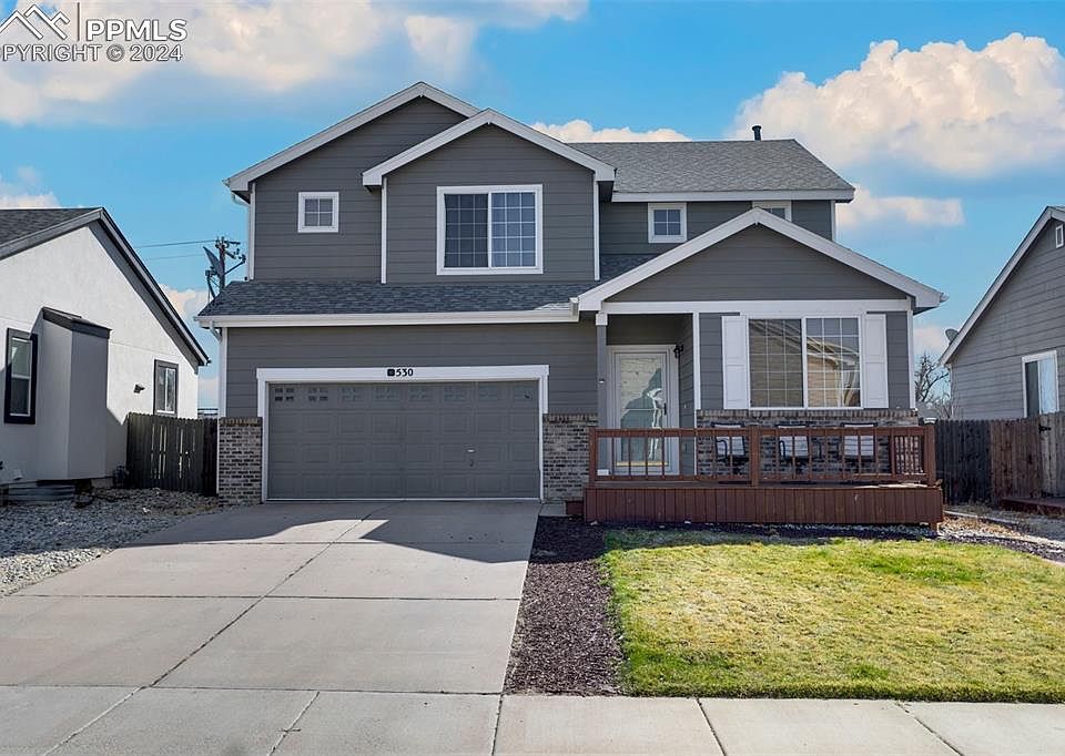 Charming home situated next to a walking trail with no direct rear neighbors! This 3-bedroom, 3-bathroom home features an office space and a loft that has been converted into a bedroom on the upper floor, potentially offering a total of 5 bedrooms. The house boasts a well-designed layout with two living areas on the main level. The living room showcases high ceilings and ample natural light, while the family room comes with a gas fireplace and is open to the dining and kitchen area. The kitchen is a standout with plenty of cabinets and countertop space. The dining area conveniently leads to the outdoor patio for grilling and outdoor activities. Laundry facilities are located on the main floor. Upstairs, there are a total of 4 bedrooms since the loft has been transformed into an additional bedroom. The primary bedroom is generously spacious and connects to a full 5-piece ensuite bathroom and a separate walk-in closet. Wake up each morning and take a look at Pikes Peak! The basement is unfinished but has plumbing rough-ins for a future bathroom, providing a blank canvas for personal touches. The home features central air, ceiling fans, a fully fenced and landscaped backyard, a sprinkler system, recently painted exterior, and a new roof installed in 2018. Additionally, a front deck has been added to extend the outdoor living space. Minutes away from I25, Fort Carson, Powers Corridor, shopping, and medical care. Heritage Subdivision includes parks and attaches to walking trails.