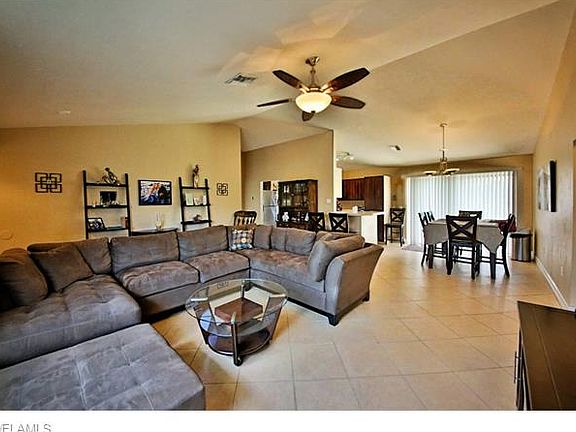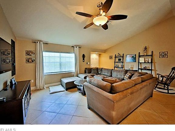 Don't miss this opportunity in Golden Gate City. Enjoy an open Great room floor plan with dining area and vaulted ceiling. 3 bedrooms, 2 bath, and 2 car garage, 1,344 square feet of spacious living area. Attractive kitchen with efficient use of space boasts marble tile kitchen counter tops, contrast cabinetry, and stainless steel appliances including a Bosch Dishwasher. Master suite has a walk in closet and en suite private bath including designer sink vanity and tiled shower. Split bedroom floor plan for privacy. This home includes a large fenced back yard with paved patio, cool sun shade, and peaceful water views. The 2 car garage offers a work space with storage cabinetry and versatile garage screen door great for ventilation & more light. This home is complete with ceramic tile on diagonal flooring in the main living area and third bedroom, laminate flooring in the master suite and second bedroom. See list of home updates attached to this listing.
