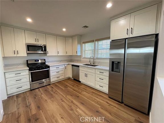 Come see this remodeled and modern gated house in the great Valley Village Community All remodeled beautiful white kitchen with new stone counter tops, new stainless appliances, wood like floors throughout the house (no carpet), nice remodeled bathrooms, large Master suite with its own remodeled bathroom, XL glass shower, walk in closet, two sinks, huge beautiful family room of the kitchen with a wet bar, separate laundry room, freshly painted inside out, very light and bright, LED lights, tankless water heater, open floorplan, in the heart of the Valley close to all City amenities such as Shules, restaurants, coffee shops, malls, markets, public transportation, FRWYs etc... ready for you to move in and enjoy