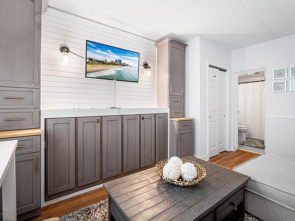 BEACHFRONT, cozy beachfront studio fully renovated 2021; The perfect shore starter unit! Steps to the pristine Boardwalk and Beach in the desirable North Beach section of Ventnor. There is a dedicated storage locker located in the garage area of the building large enough for 4 chairs and an umbrella. Little Rock Side has an outdoor shower for easy sand rinsing after day at the beach. Laundry room with coin washed and dryer on every floor and a wonderful deck with pool with amazing ocean views. The property is walking distance to the movie theatre, dining, bike rentals, sandwich and ice cream shops. There is street parking only for this unit; numbered spaces are deeded and privately owned. listing agent has financial interest.