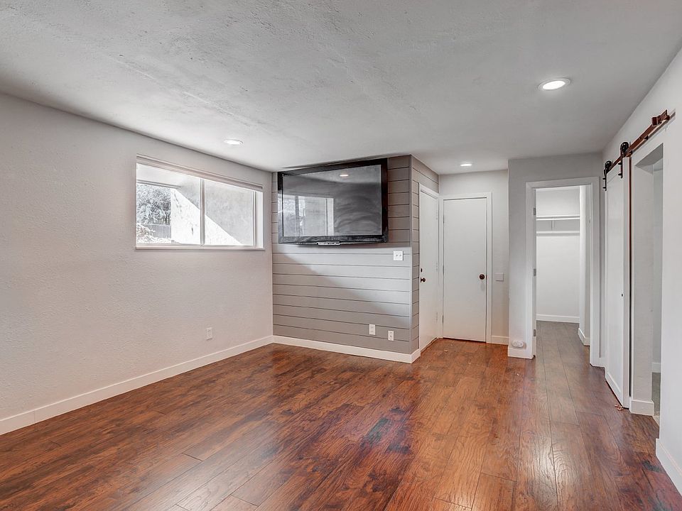 Barn style doorHuge closetUpdated and stylish bathroomNew hardwood flooringShiplap feature wall