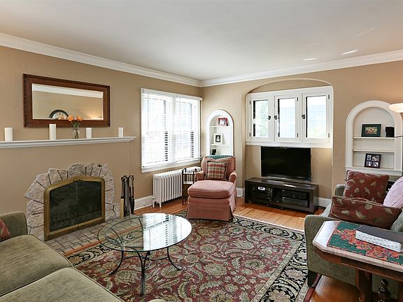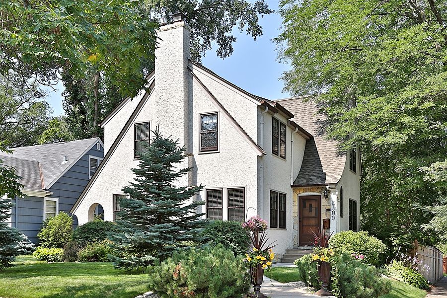 Absolutely charming and immaculate Tudor in the popular Lynnhurst neighborhood just off Minnehaha Creek. Picturesque setting on a gorgeous landscaped corner lot. Beautifully maintained and updated including lovely hardwood floors and enameled woodwork throughout. Spacious open living room with a pretty fireplace and two built-in display shelves. Nice-sized formal dining room has two built-in corner hutches. Fabulous remodeled kitchen has been opened to the dining room. Many special features, including lovely granite counter tops, a large peninsula with eating bar, stainless steel appliances, hardwood floors and a greenhouse window to bring in lots of light. Beautiful new ceramic tile ¾ main level bathroom addition includes a marble vanity, heated floor, even in the large glass shower. Convenient main floor laundry area adjacent to the bathroom. If preferred, there is also space in the lower level for a laundry room. Excellent floor plan with three nice-sized bedrooms and a spacious full bath in the upper level. Bathroom highlights include ceramic tile floor, pedestal sink and charming natural woodwork. Spacious master bedroom with charming built-in shelving and walk-in closet. Unique loft space with ladder access and three skylights make the second bedroom popular with kids! Excellent additional spaces in the lower level including a large walk-in cedar closet, a quarter bath and glass block window. The former tuck-under garage has been converted into a wonderful space with tile floor and glass patio doors that lead out to the back yard and patio. Currently used as an office, but could also be a great family room. Beautifully landscaped, very private back yard with gorgeous gardens, a stone planter and a large paver patio. A lovely, peaceful retreat! Nice-sized two-car garage with newer garage door. Enjoy close proximity to scenic Minnehaha Creek and nearby Lake Harriet and their miles of popular biking and walking paths. Strong and popular public schools: Burroughs Community School (K-5), Ramsey Middle School (6-8) and Washburn High School which offers the academically challenging International Baccalaureate (IB) Program. A very special home with exceptional warmth and charm!