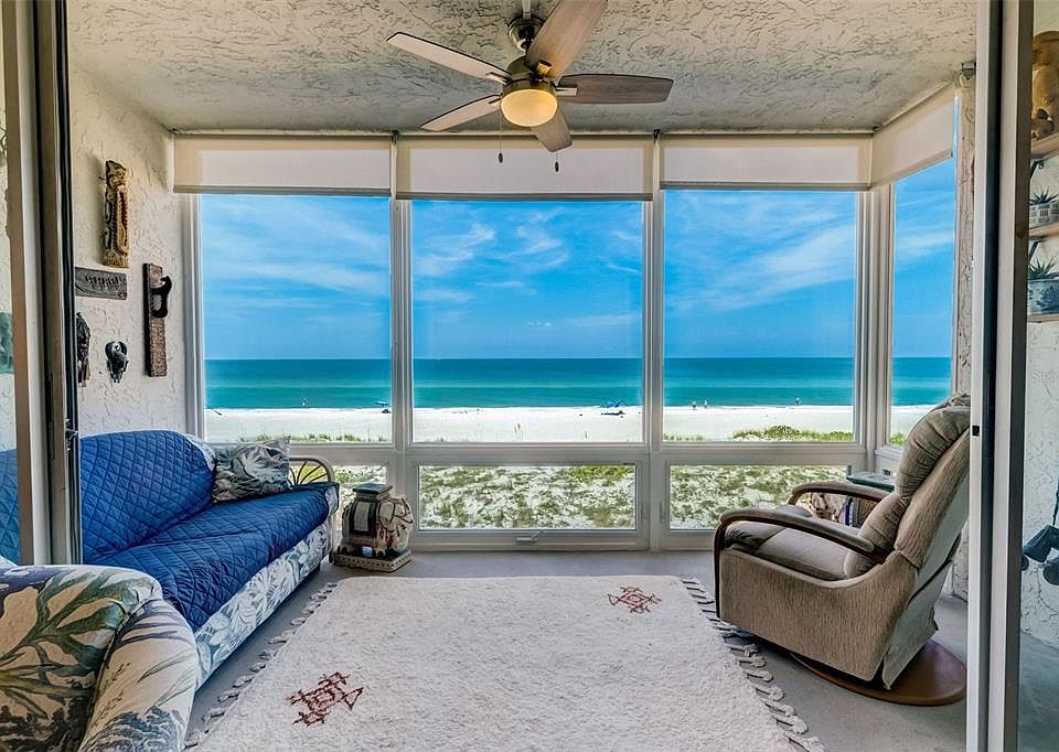 BREATHTAKING BEACHFRONT CONDO- BEST Location on Anna Maria Island. BEAUTIFUL VIEWS FROM almost every room in this 2/2 Condo! Enjoy the blue water and sea life right out your windows all day everyday. Only a few steps away at all times. When you get tired of the powdery sand and waves, you can retreat to your beautiful pool while enjoying the fresh air and rolling waves. Another bonus is the most beautiful sunsets every night, it never gets old! A few updates include New tile flooring throughout entire condo 2021, updated bathrooms 2023, updated kitchen backsplash 2023, new ceiling fans and crown molding 2022, neutral pallet colors throughout. Every unit comes with an assigned storage closet to hold extra beach or household extras. IN addition you have a deeded garage space. As a bonus with with a full price offer you can have a second deeded garage space which is an enormous value. Martinique is the only “high-rise” on Anna Maria Island and features a recently remodeled surf room, kitchen, extra-large lap pool, covered patio for lounging and grilling, tennis and pickleball courts, and washer/dryer on each floor. You may choose to rent the residence when you are not there for a potential income opportunity. It has a secure lobby and elevator to all the floors or choose to take the stairs. Take the island trolley to explore all the fun places including restaurants, live music, water sports, boutiques, ice cream shops, fishing options and long walks on the sand. It is a fun place to make new and lasting memories! Remember everyday is a great day when you live on the Island and Beachfront Condo! This is a special location and won't last long!