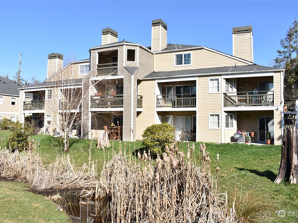 Opportunity knocks! Prime Harbour Pointe location features this lovely ground floor unit w/ excellent floorplan. Fresh paint, laminate wood flooring and designer accents. Large bedroom, sparkling clean full bath, terrific kitchen w/ huge pantry, breakfast bar and stainless steel appliances. Living room w/ showy fireplace boasts sliding door overlooking the gardens. Two patios, two parking spaces, tons of visitor parking, clubhouse, swimming pool. Trails, parks, services, beaches. Mukilteo schools!