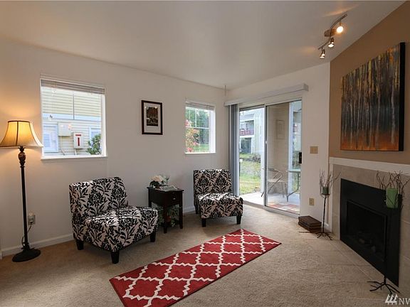 At the heart of Harbour Pointe, Mukilteo, in the midst of golf and views community. Near shops, restaurants, library, fitness centers, and easy access to freeways & Boeing. Updated and move-in ready ground floor condo offers cozy electric fireplace, newer paint and carpet, SS appliances and full size WD in unit. Private storage off the patio. Walking distance to award-wining Mukilteo Schools. Huge plus: Comes with two reserved parking spaces: Carport and Non-covered right outside the front door!