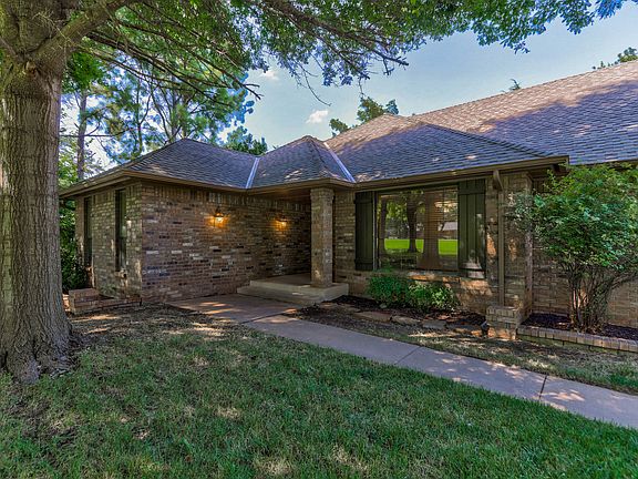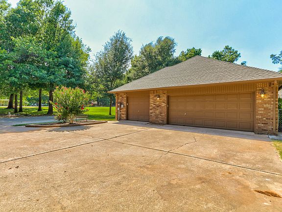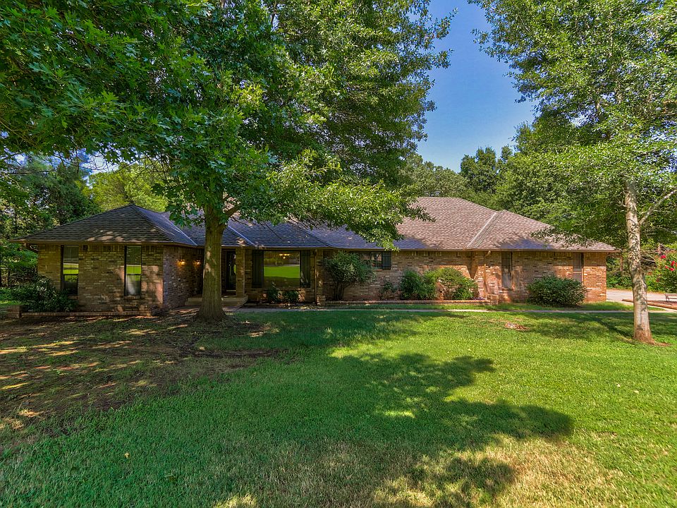 This fabulous home sits on 1.05 wooded acres in a quiet, well-established neighborhood in north Edmond. Upon entering this home, you will find the dining room to the right with a large picture window allowing views of the beautiful front yard. The spacious living room has a vaulted ceiling and brick gas fireplace. The view of the backyard through more windows and glass door can't be beat. On one side of the home, you will find three bedrooms and a full bathroom with double sinks and an abundance of storage. The other side of the home boasts a large updated kitchen with all new appliances. The center island is complete with a downdraft cooktop, and the new single basin sink and faucet compliment the newly installed granite countertop and tile backsplash. Off the kitchen you will enter the master bedroom which has a vaulted ceiling and a fireplace with gas logs for those chilly Oklahoma nights. The sliding glass door allows another exit to the beautiful two-level wood deck and private backyard with mature trees and fort for the kids or grandkids to enjoy. In the master bath you will find a quartz countertop vanity with double sinks, a new tile shower and relaxing jetted tub. Some additional updates include new luxury vinyl plank flooring (LVP), new carpet, new heat and air units and fresh paint throughout. This home has a large, divided 3-car garage with an inground storm shelter. Outside features include a sprinkler system, septic and well. An additional concrete parking area with extra security lighting is a plus. There is plenty of space to add RV/boat parking or build the shop that you've always dreamed of. Access to I-35 is just a short drive away. Don't miss this one! Call to see today - 405-293-3010.