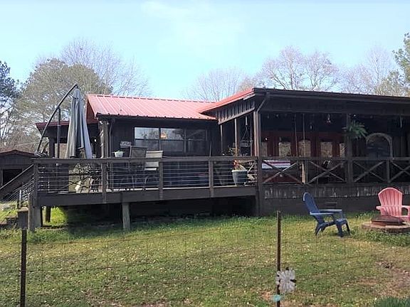 Beautiful waterfront home with approximately 4.39 acres +/-. This is a very unique lake property with wonderful cabin to enjoy a farm feel but with an awesome price lake view. The home has three bedrooms with 2 1/2 bathrooms. Kitchen has beautiful tile floors and very open to the living room. Livingroom and hall has pretty hardwood floors. Bedrooms have pretty carpet. Master bathroom has two vanities and huge custom shower. The kitchen has lots of cabinets and plenty of space for cooking and entertaining. Two big porches with additional decks for entertaining. Large laundry room with extra cabinets for storage. The pier is great for two boats to pull in and built a few years ago. Also, the barn has been remodeled and is great for entertaining plus lots of storage. Separate storage building for lots of items. Level yard with beautiful fruit trees. Approx. 566 ft. of waterfront per tax records. The driveway is shared. Fenced yard. Selling as-is. . Must have appointment!