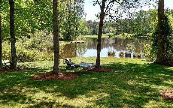 Wake up in your vacation home everyday! You can find this one of kind home tucked away in Millrace Subdivision on approx. 3 acres. This gorgeous home is on pond #3 and has one of the best views in the neighborhood. Relax in the hammock or cast a line in the pond. After you catch a few bass, or crappie or two...head inside. Here you will find a large eat in kitchen (with new appliances, marble backsplash, and granite countertop 2016). With a view that takes your breath. The floor plan offers flexibility with a large master suite and 2 additional bedrooms with Jack/Jill full bath. The Master bath was beautifully renovated in 2017. The dramatic 2 story living room has large built-ins and full moulding which overlooks the screened in porch and deck. The deck overlooks fully mature trees and large (aluminum) fenced yard...perfect for pets and children. Caution: your friends and family will never leave!! :) On the 2nd floor, you will find a large bedroom, an office (or bedroom) and 800 sq ft bonus room with bar. Windows span the entire back wall for additional viewing of the pond. This is a home that will please everyone in the family! Once you are here...you will never want to leave.